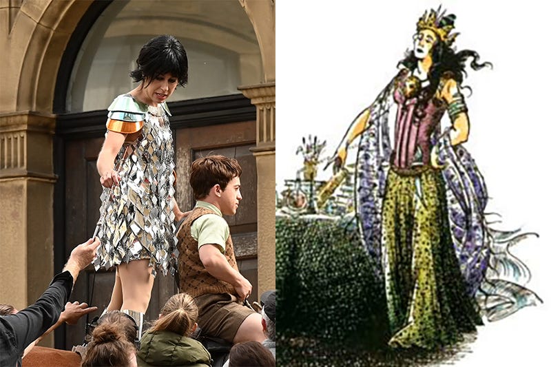 Once again, virtually nothing has been confirmed, but from what we can glean from location images and video, she’s making significant changes to details from The Magician’s Nephew, including Jadis’ look.