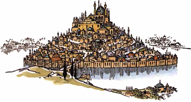 From the outside, Tashbaan is an impressive sight. Shasta sees the reflected sunlight gleaming off the silver dome of Tash’s temple. He smells flowers and fruit. “This is a wonderful place,” he can’t help but exclaim. This is the first city and crowd in the Narnia books.