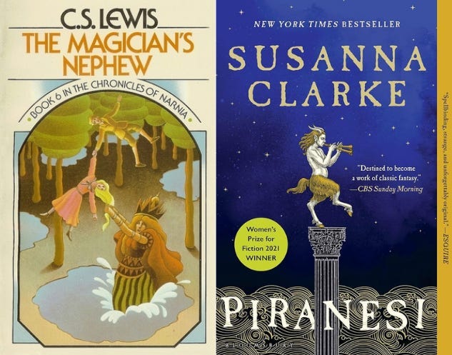 Her second novel, Piranesi, is much more Lewisian, however. She’s spoken of how much the book borrows, directly and indirectly, from the Narnia series, especially The Magician’s Nephew.