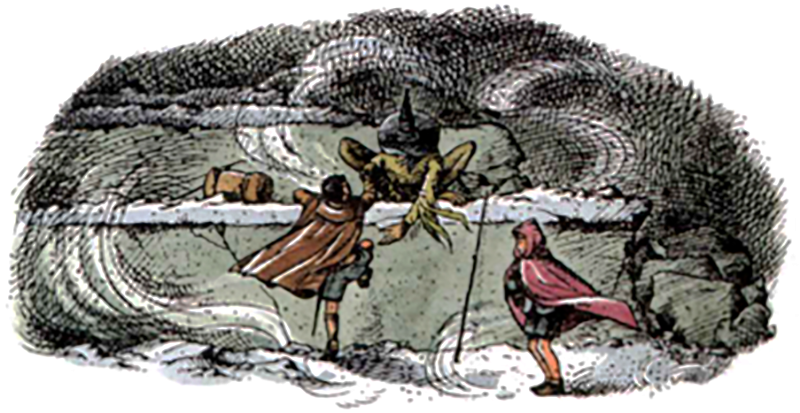 As they make their way to Harfang, snowflakes begin to fall until the children and Puddleglum are trudging through a freezing, blinding snowstorm. Being the land of giants, they’re forced to climb up four-foot tall ledges before reaching a plateau. While they’re done with climbing, they’re now forced to deal with the full brunt of the driving wind.